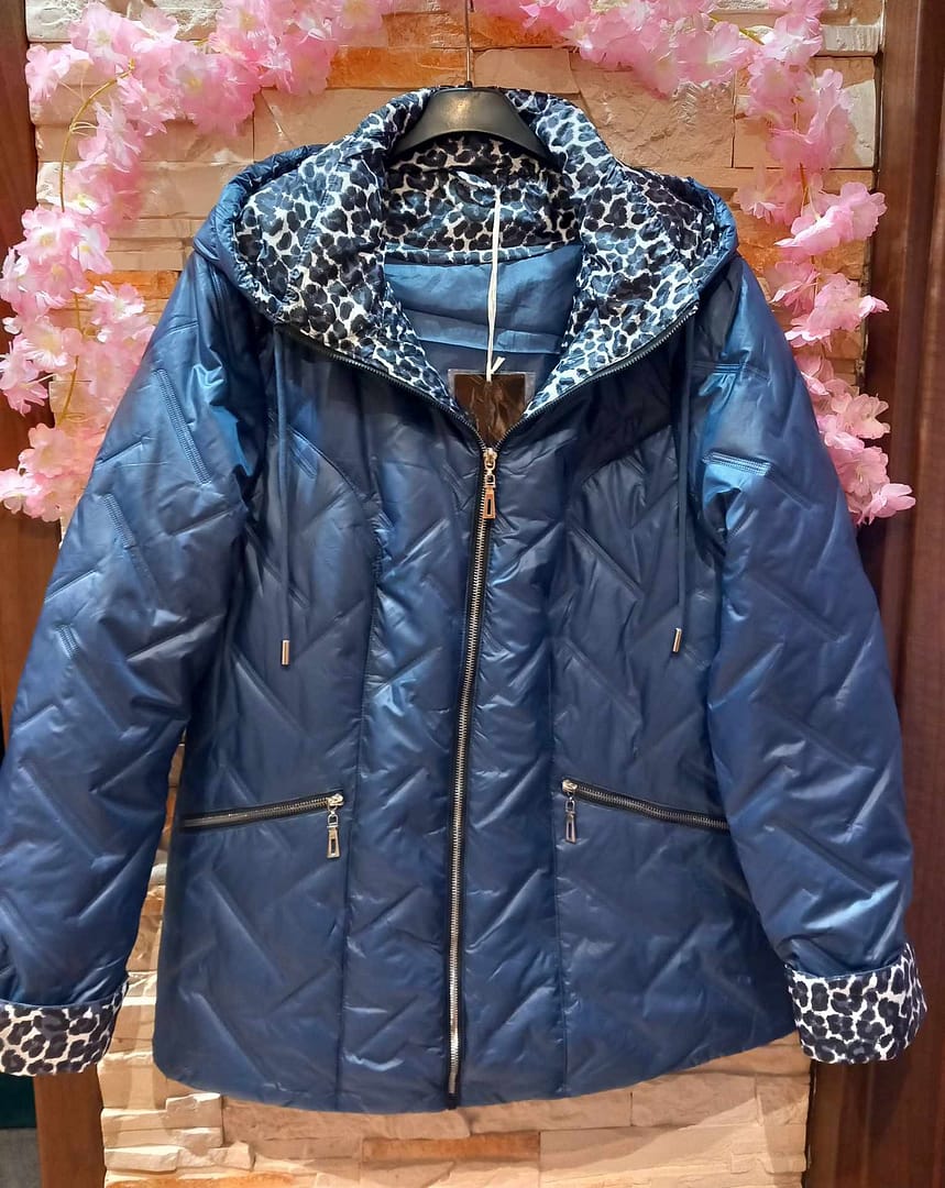 Stylowa niebieska kurtka damska, lekko ocieplana, z odpinanym kapturem. Idealna na chłodniejsze dni – wygodna, funkcjonalna i kobieca.